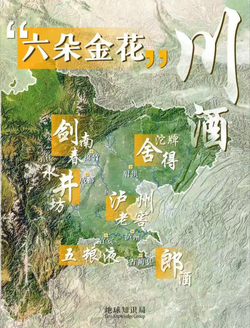 如宜宾的五粮液、绵竹的剑南春、古蔺县的郎酒、泸州市的泸州老窖等等,这些家喻户晓的川酒品牌在全国范围内都广受欢迎,也因此四川生产了全国白酒产量的近一半。